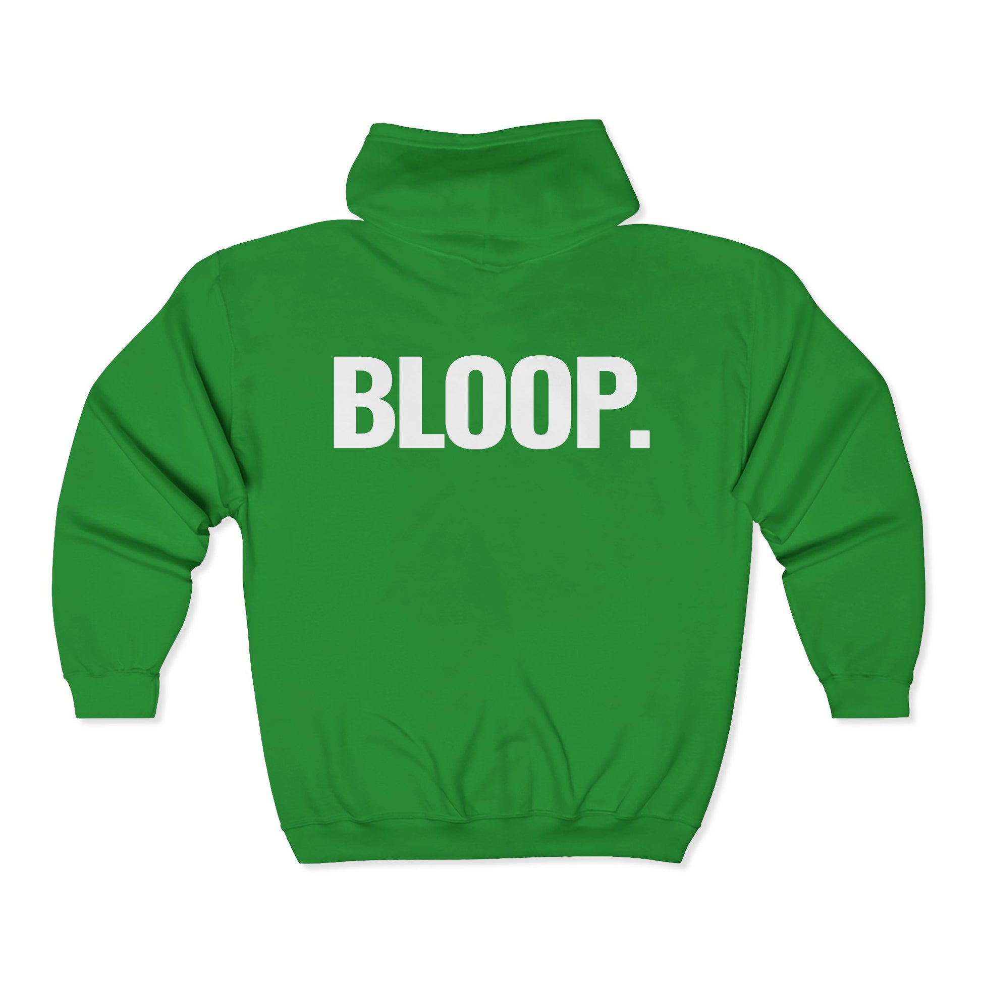 This cozy zip-up hoodie says it plainly: BLOOP. One word. Zero explanation. Maximum confidence.