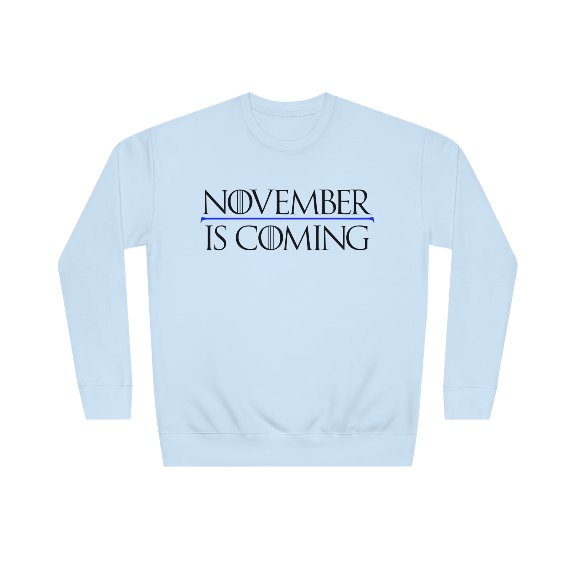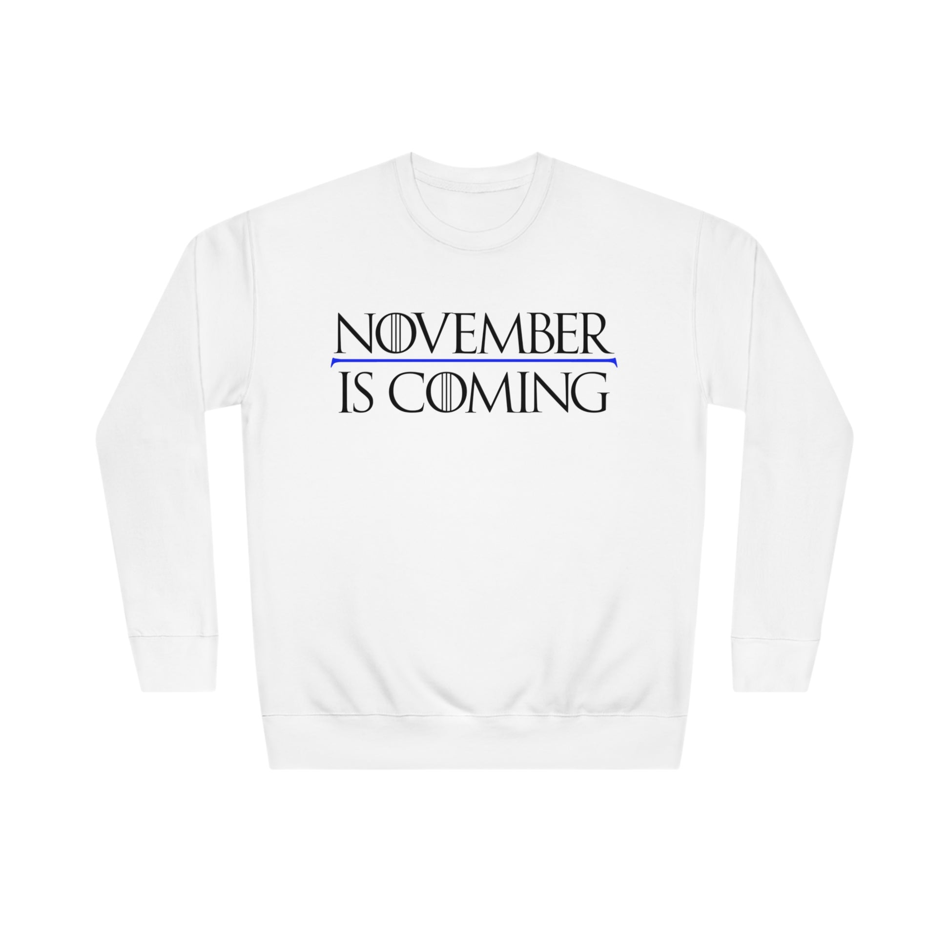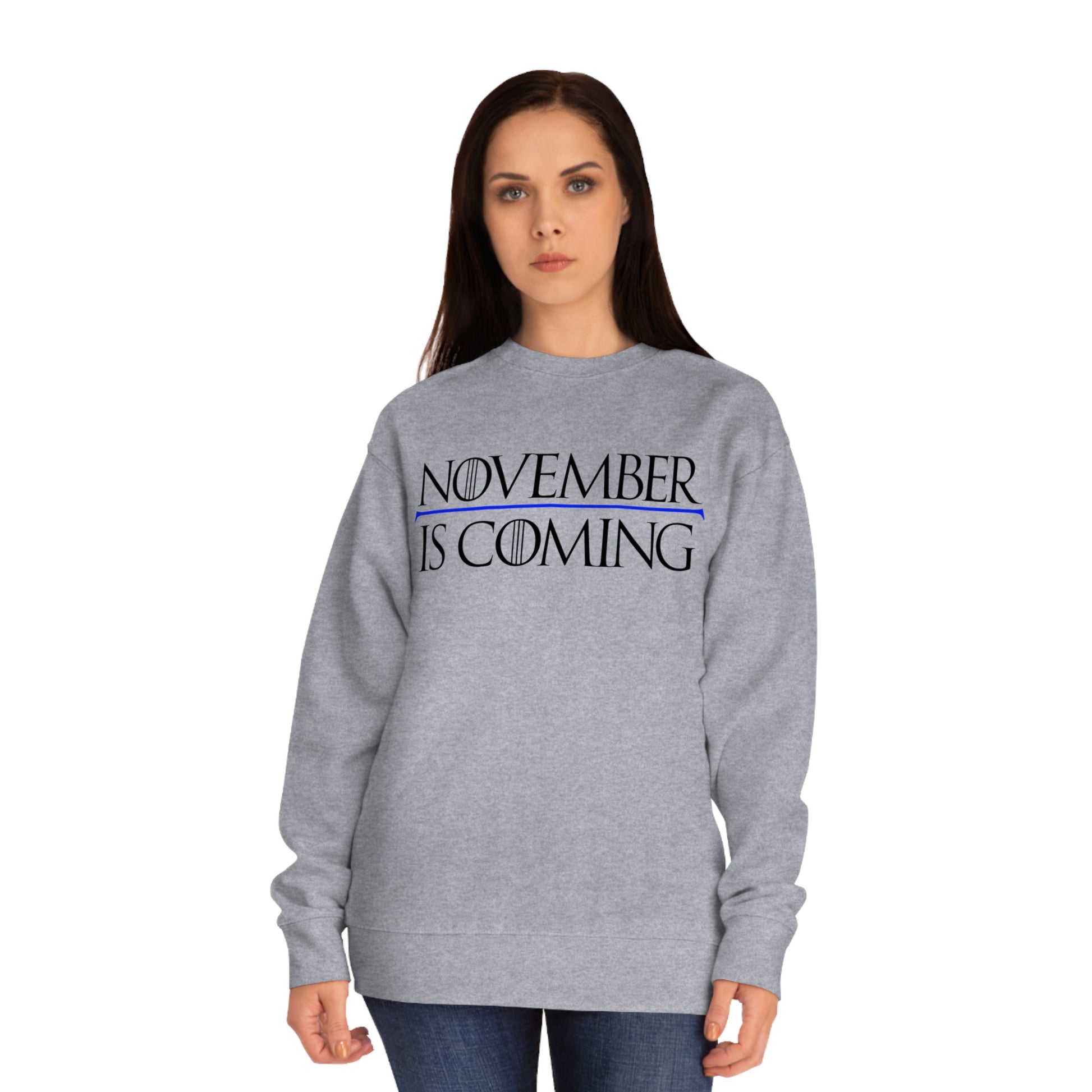 Whether you're out campaigning, attending fall festivities, or simply relaxing at home, the "November Is Coming" sweatshirt is a perfect addition to your wardrobe. It's more than just a piece of clothing; it's a statement that keeps you warm and stylish throughout the season.