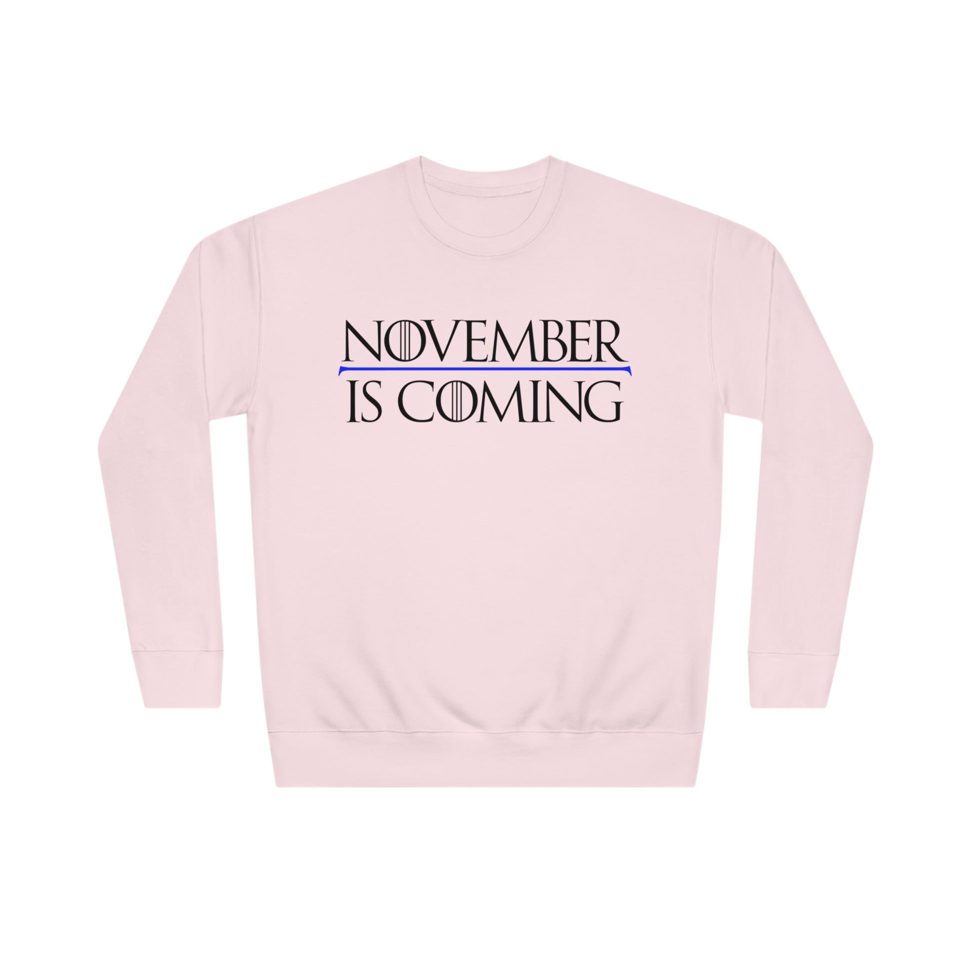 "November Is Coming" - Sweatshirt - Vote Democrat - Premium Cotton - Black Text
