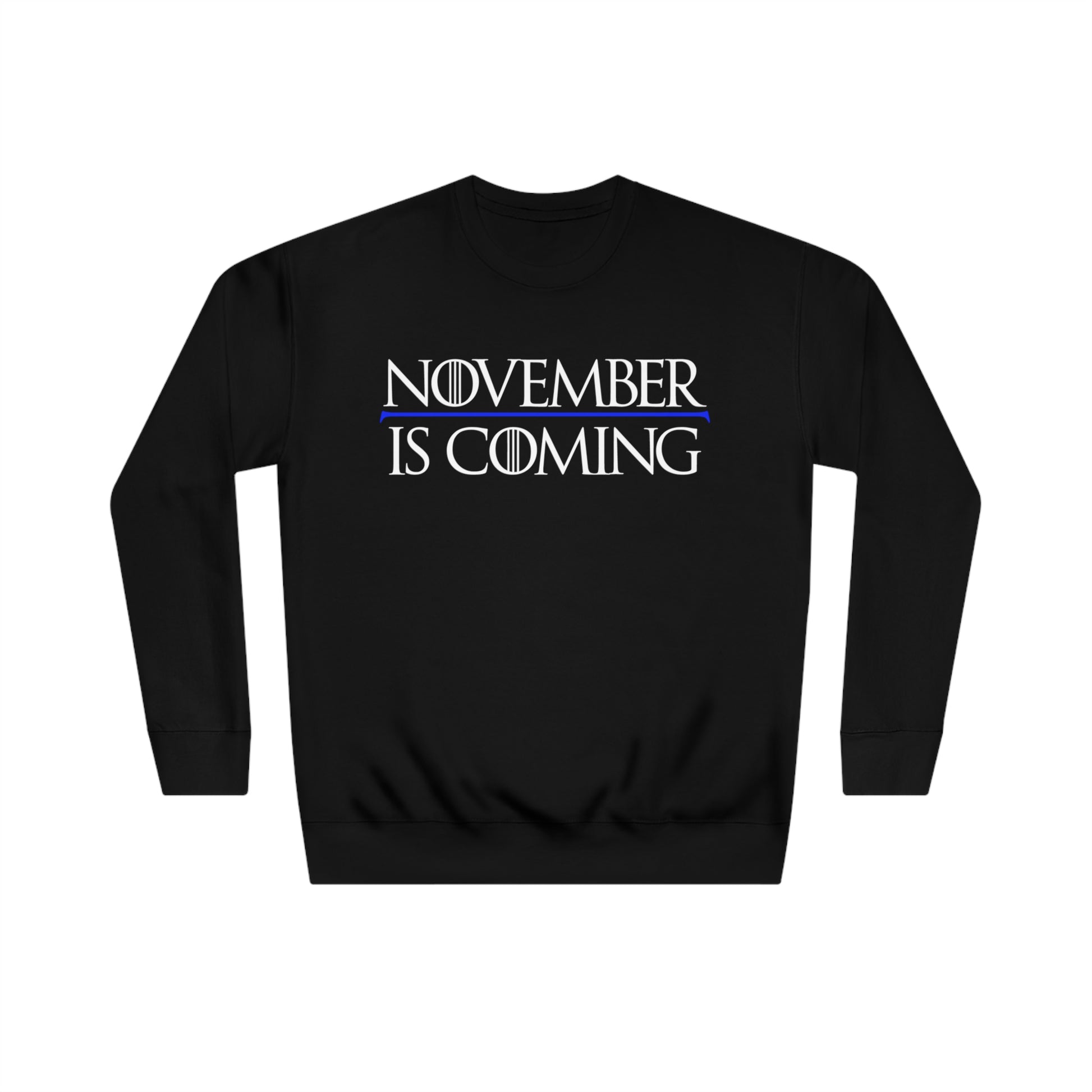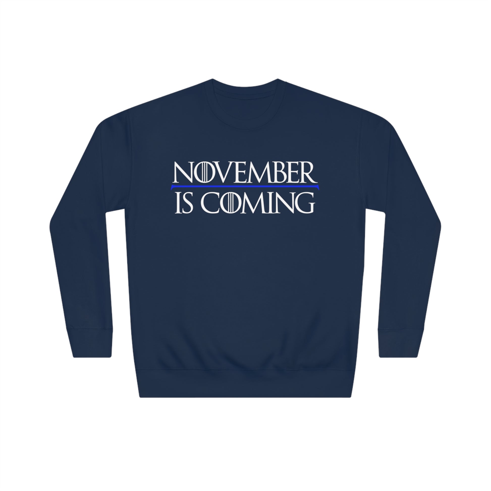 "November Is Coming" - Sweatshirt - Vote Democrat - Premium Cotton - White Text
