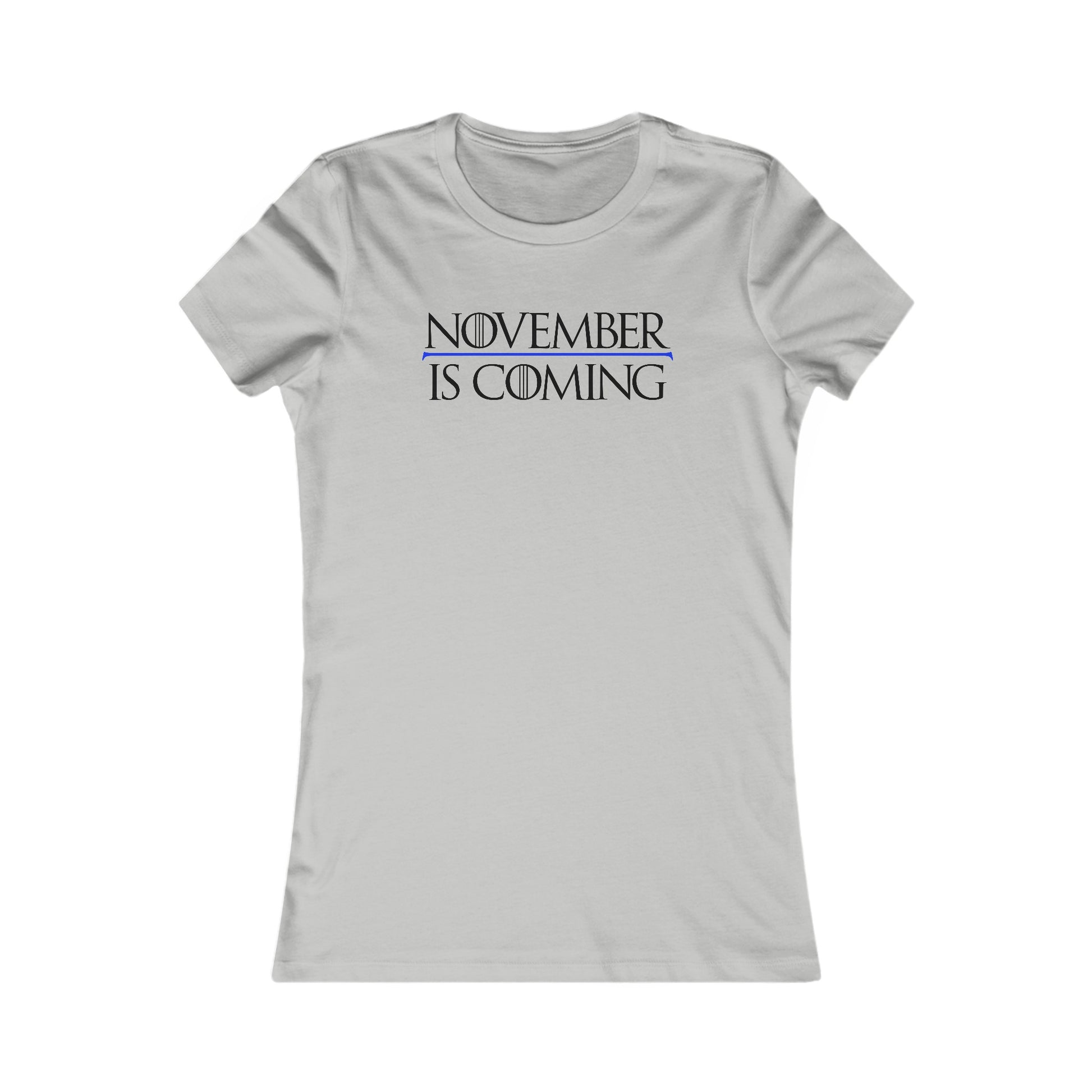 Why You'll Love It: For the politically engaged or the Game of Thrones aficionado, our "November Is Coming" slim fit t-shirt is the perfect blend of wit, comfort, and style. Its sleek, feminine fit ensures you look great while making a statement, whether you're out and about or gearing up for the election season.